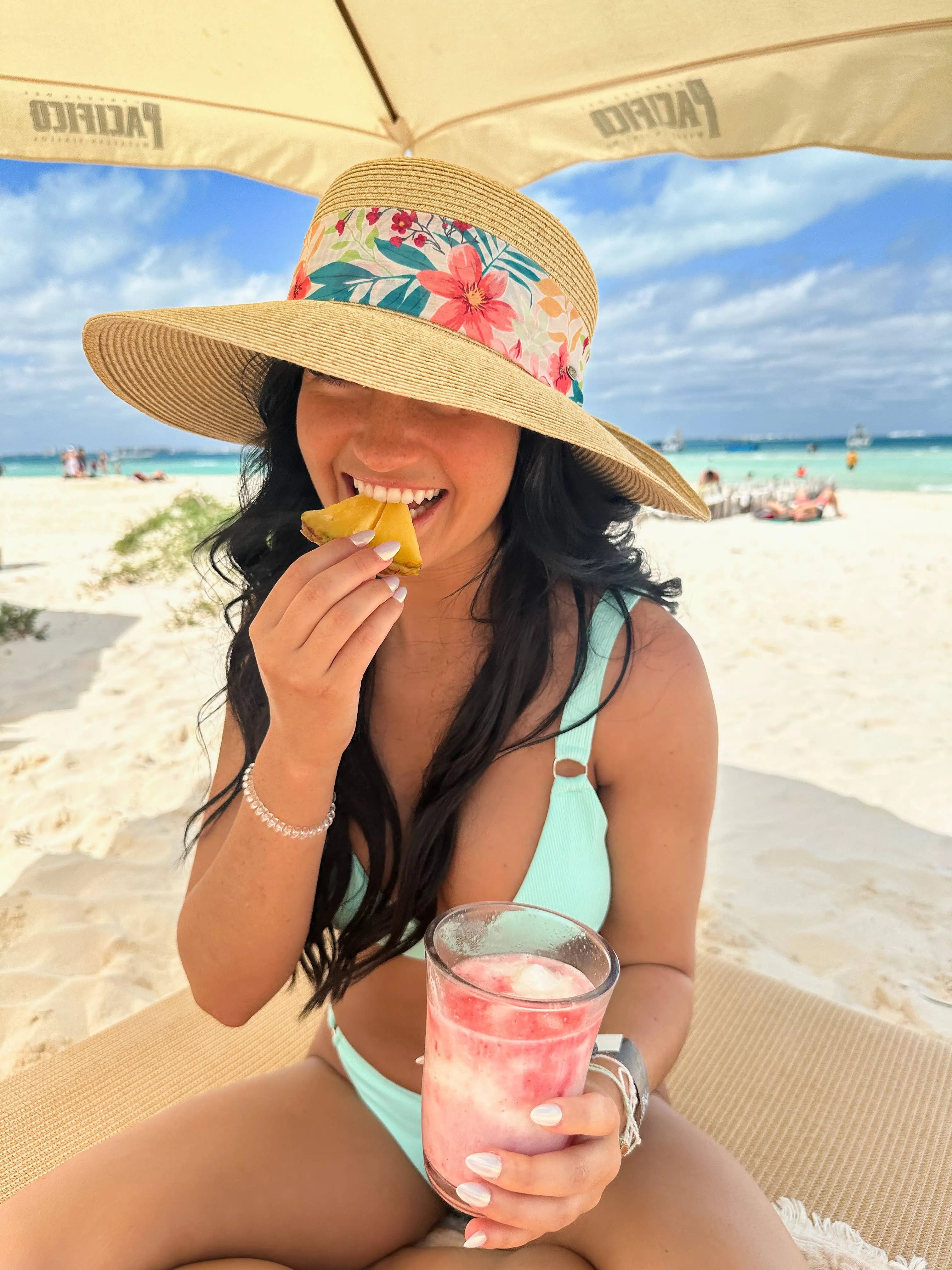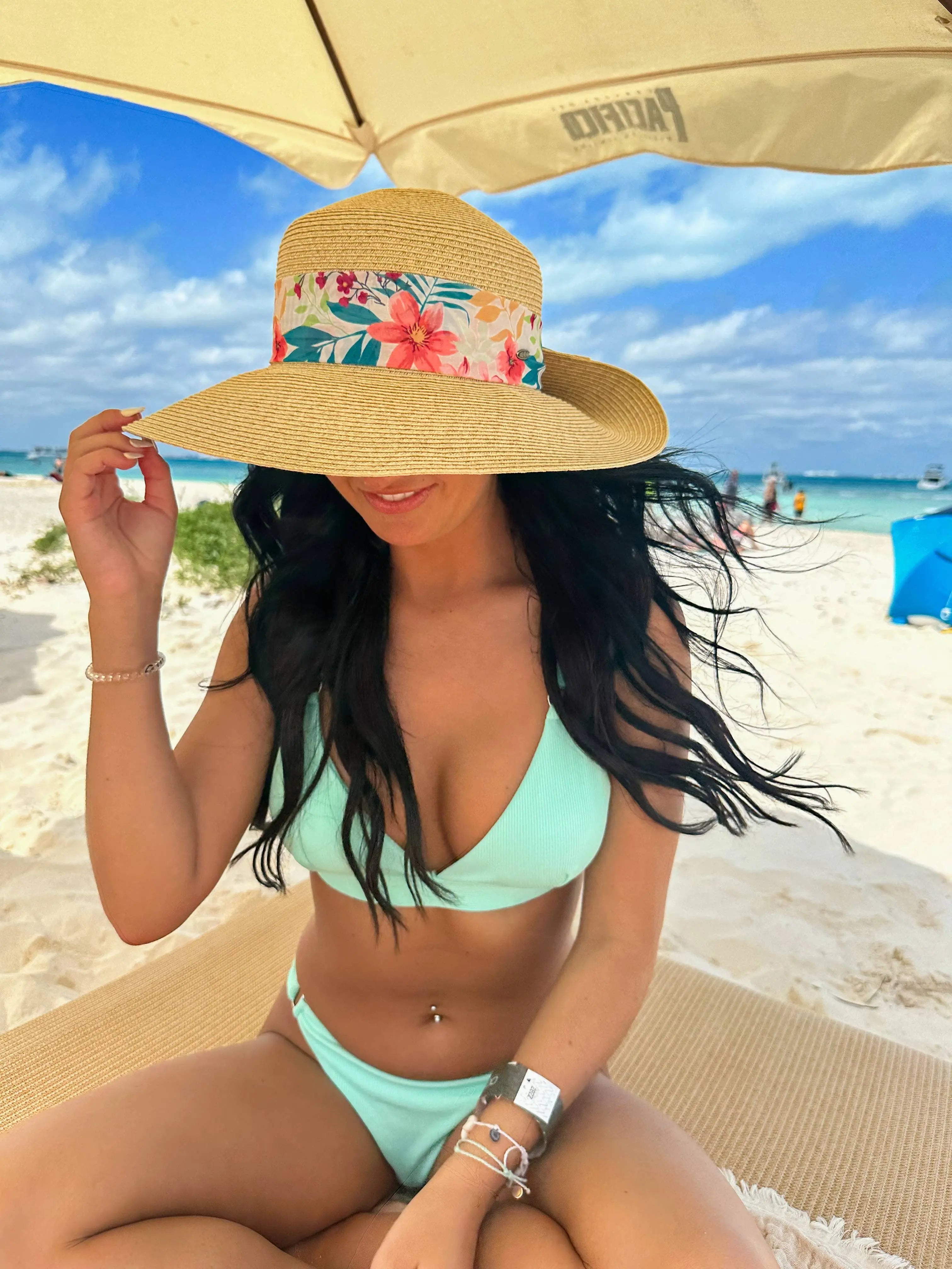 Need a cute hat for vacay, a special occasion, or just because? We have you covered! Tropical Print Ribbon Trim Rolled Sun Hat.